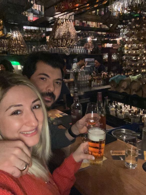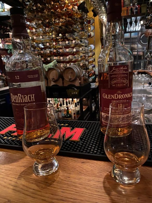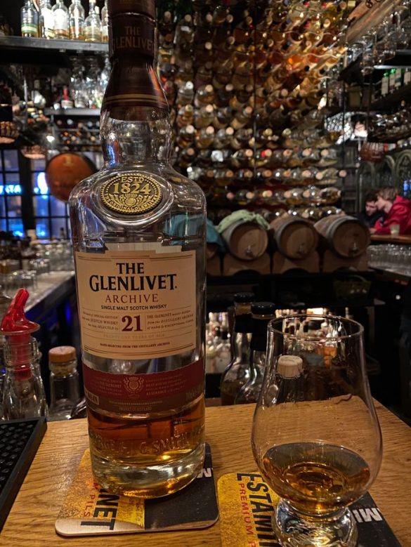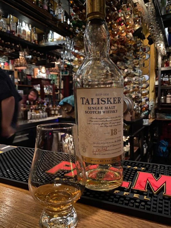 Şaka bi yana; gerçekten soğuk bir şubat ayı akşamı uzun bir yürüyüşün sonrasında içimizi ısıtacak yeri nihayet buluyoruz eşimle. Girer girmez ısınıyoruz; gözbebeklerim büyüyor etrafı süzdükçe, her yer viski şişesi. Duvarlar tozlu viski kutuları ile kaplı, duvar kağıdı gibi. Değişik viski aksesuarları. Sadece 1 kişi çalışıyor, ama arı gibi her yere yetişiyor, çok ilgili, güler yüzlü, samimi, ambiyans zaten on numara.